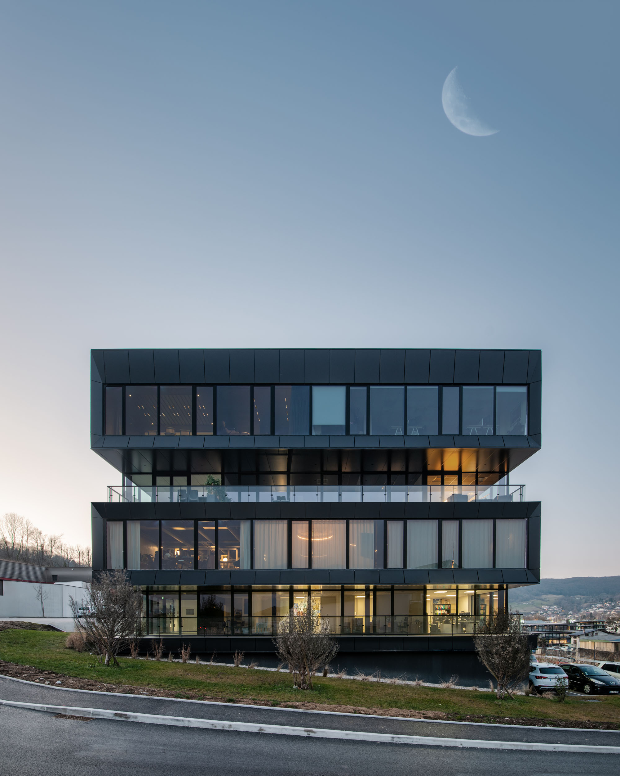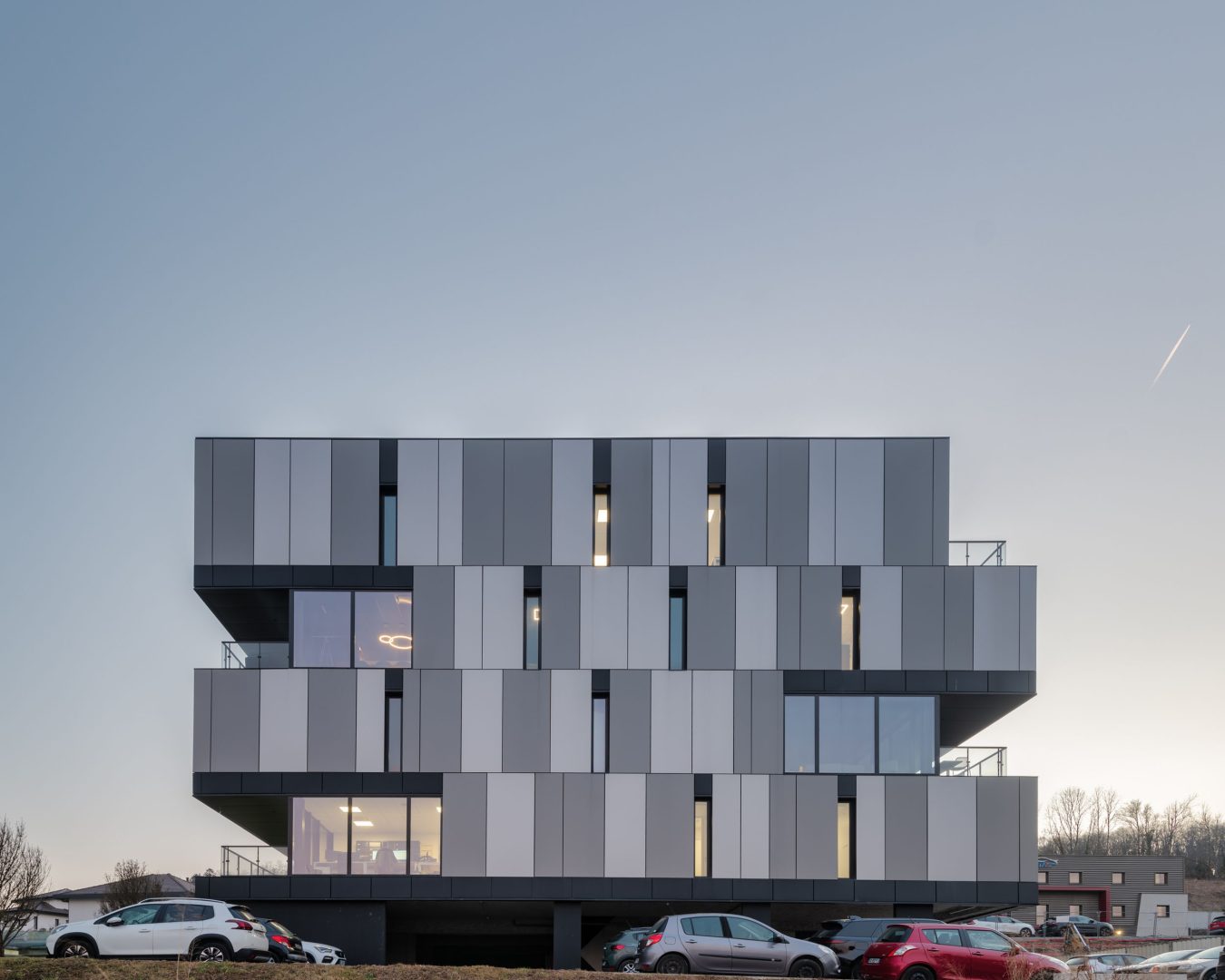Ce projet met en avant une structure légère, pensée pour maximiser la modularité et l’adaptabilité. Conçu comme un bâtiment connecté, il intègre des technologies avancées pour offrir une expérience fluide et intuitive à ses occupants. Le parking sur pilotis libère de l’espace au sol, permettant des aménagements paysagers harmonieux et une circulation optimisée. Grâce à un programme réversible, le bâtiment peut facilement évoluer pour accueillir différentes fonctions, des bureaux aux espaces commerciaux ou résidentiels, selon les besoins. Les lignes architecturales, épurées et contemporaines, favorisent une ambiance dynamique et inspirante. L’orientation stratégique maximise l’apport en lumière naturelle et valorise les vues sur l’environnement, offrant un cadre de travail stimulant et agréable.